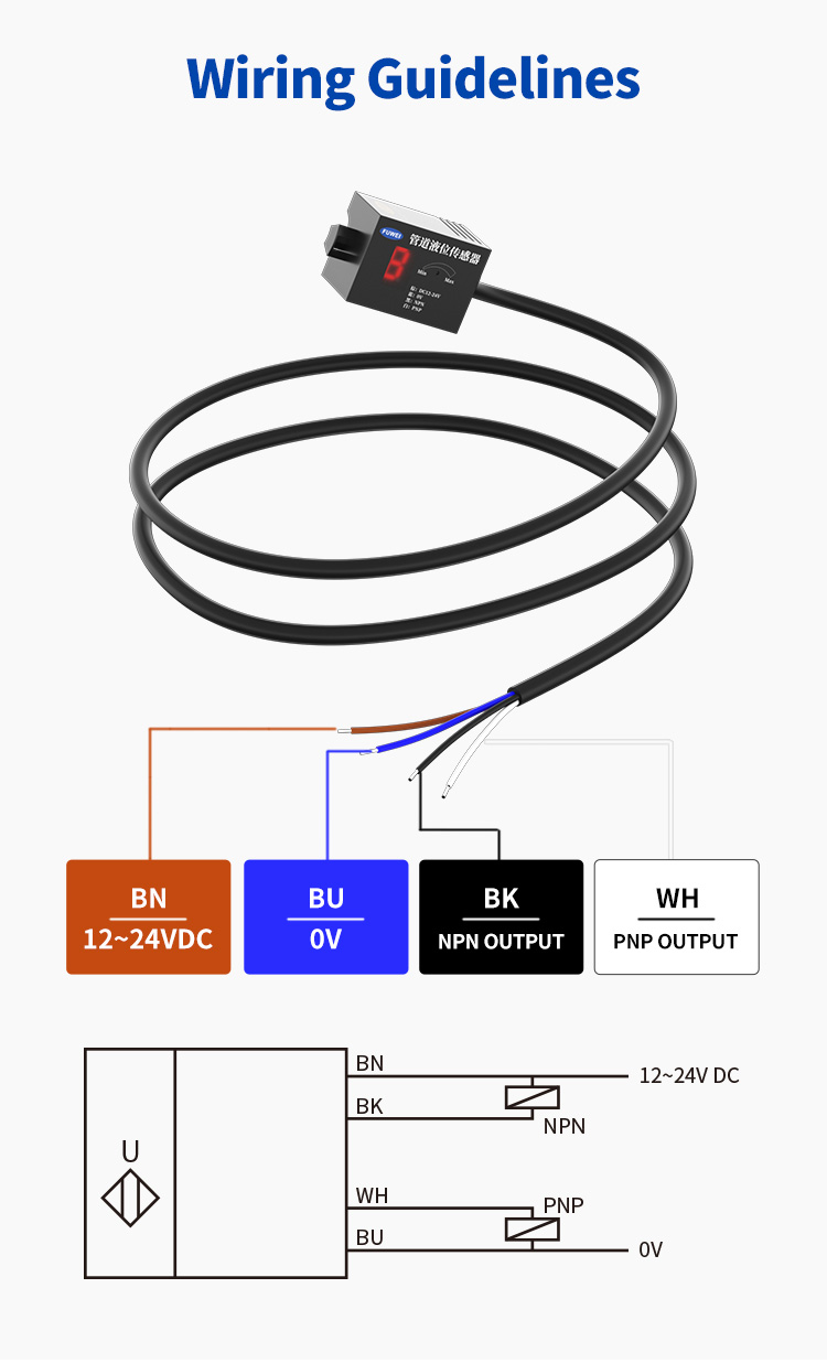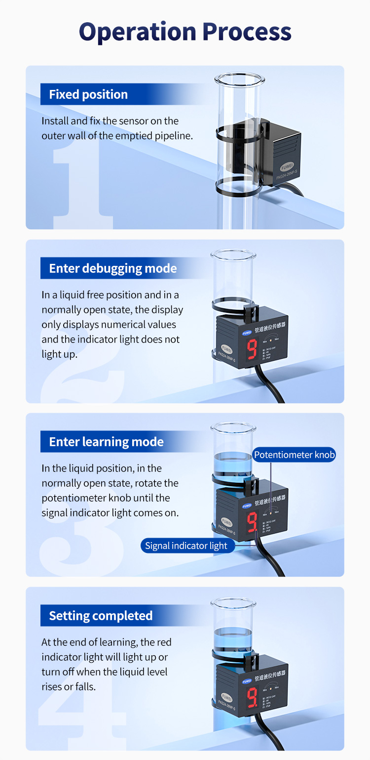 FKG24-13NP-S Principe capacitif du capteur de niveau de détection de détection de niveau de bas niveau, pas facilement affecté par le matériau du tuyau