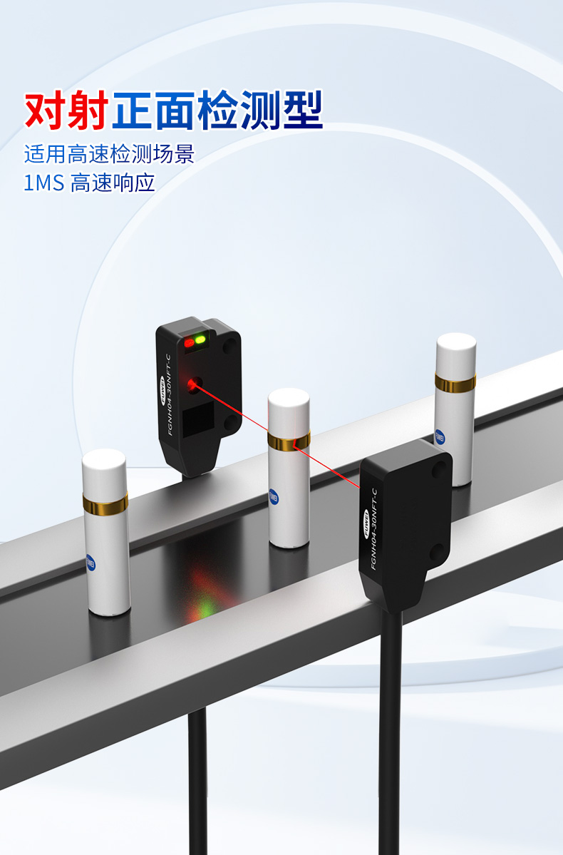 De plus, la série FGNH04-30NFT propose plusieurs modes de détection pour prendre en charge de manière approfondie les applications à grande vitesse. Sa détection latérale à travers le faisceau, la détection du front par faisceau et les variantes de détection de la réflexion diffuse offrent toutes une réponse à grande vitesse de 1 ms, s'adaptant aux diverses positions de montage et aux exigences de détection. En particulier dans l'inspection de la broche et des micro-composants, le type de faisceau à travers permet la détection d'obstruction via un montage transversal pour déterminer précisément la présence de la broche, tandis que le type de réflexion diffus convient à la détection à clairerie rapprochée sans récepteur. Cette flexibilité multimode permet aux utilisateurs de sélectionner la configuration optimale pour leurs besoins spécifiques, garantissant un fonctionnement stable de capteurs détectant des broches comme les LED sur des lignes de production à grande vitesse.