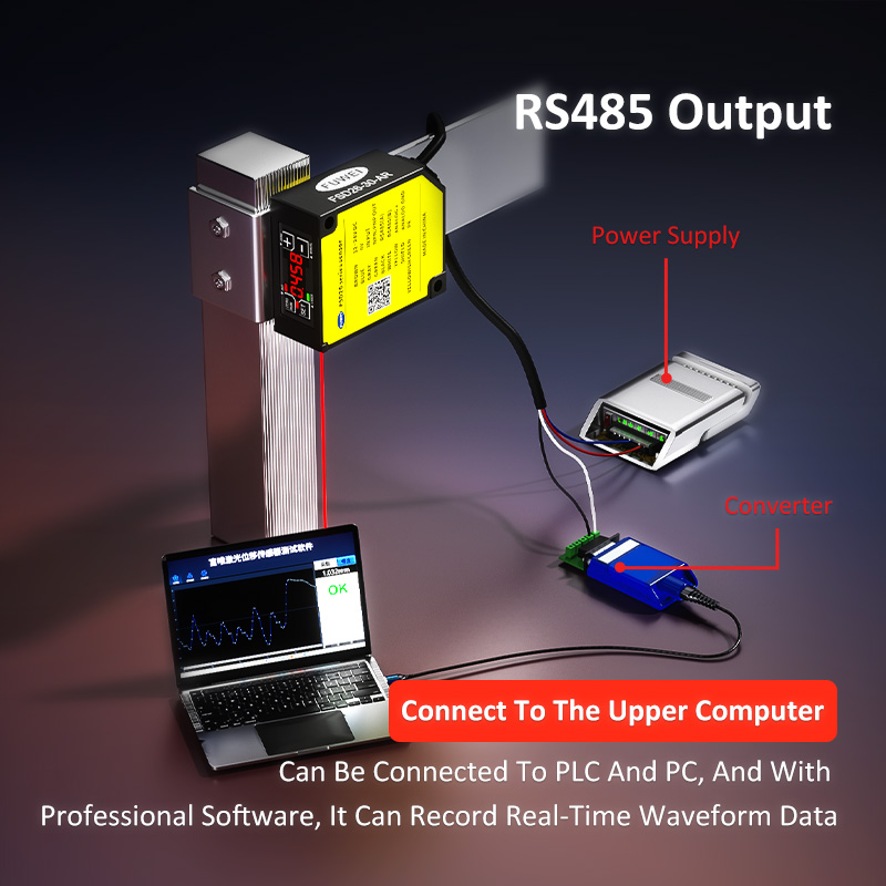 Pour répondre à divers besoins de connectivité des appareils, les capteurs de déplacement laser de la série FSD26 offrent plusieurs options de sortie. Les configurations standard incluent la sortie de communication RS485 et les sorties NPN ou PNP, avec des sorties de courant / tension analogiques en option disponibles. Cela permet une intégration sans effort avec les PLC, les ordinateurs industriels et d'autres équipements.
