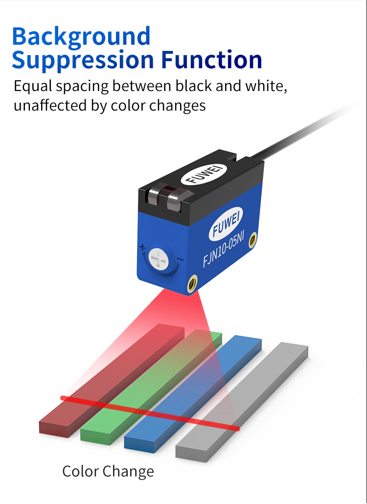 La conception percée de la fonctionnalité de suppression de fond élimine la couleur comme obstacle de détection. Les capteurs laser traditionnels éprouvent souvent des écarts de distance de détection face à des objets de couleur noir et blanc ou de couleur claire en raison de différences de réflectivité. Par exemple, lors de la détection de pièces en plastique noir, la distance de réponse est supérieure à 30% plus courte que celle des pièces blanches, conduisant à des arrêts fréquents de lignes de production pour l'étalonnage. Le FJN10-05ni, équipé d'un algorithme de suppression de fond à double canal, ajuste dynamiquement la puissance d'émission du laser et la sensibilité à la réception pour obtenir une détection précise de distance égale en noir et blanc. Dans la plage de détection de 30 à 500 mm, que la pièce soit une surface métallique brillante, un plastique mat ou un revêtement coloré, tant que la distance réelle est cohérente, le capteur peut sortir de manière stable un signal de commutation. Après qu'un certain fabricant de pièces automobiles ait adopté ce capteur, le taux de mauvaise évaluation pour détecter les bornes de harnais de câbles colorées est passé de 12% à 0,3%, avec une capacité de production quotidienne augmentant de près de 2 000 unités.