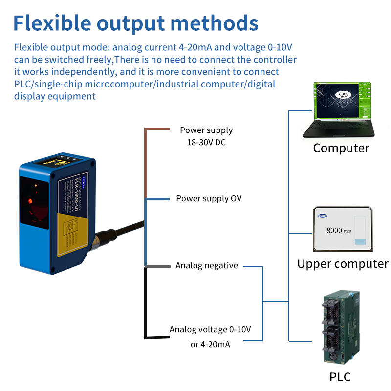 Dans les applications pratiques, le capteur de distance laser FLR-1000-UI fonctionne exceptionnellement bien. Dans la mesure du diamètre du roulis, il surveille avec précision les changements de diamètre de rouleau; Dans la mesure de la distance de la feuille de caoutchouc, les données sont précises et sans erreur; Et dans des scénarios tels que le positionnement en hauteur et la détection du niveau des matériaux, il fonctionne de manière fiable, fournissant un support robuste pour l'automatisation et l'intelligence de la production industrielle.