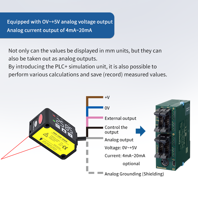 Sortie flexible pour une intégration industrielle transparente Au-delà de l'affichage des mesures directement en millimètres, la série FSD22 fournit des sorties analogiques (0-5 V/4-20 mA) pour une intégration directe avec des unités PLC + analogiques, permettant : Transmission et traitement en temps réel des données de mesure Intégration transparente avec les systèmes de contrôle existants Prise en charge de la sauvegarde et de l'enregistrement des valeurs de mesure Facilitant l'analyse des données et l'optimisation des processus Cette flexibilité permet un déploiement rapide de la série FSD22 sur diverses lignes de production automatisées, améliorant considérablement l'intelligence des processus de détection.