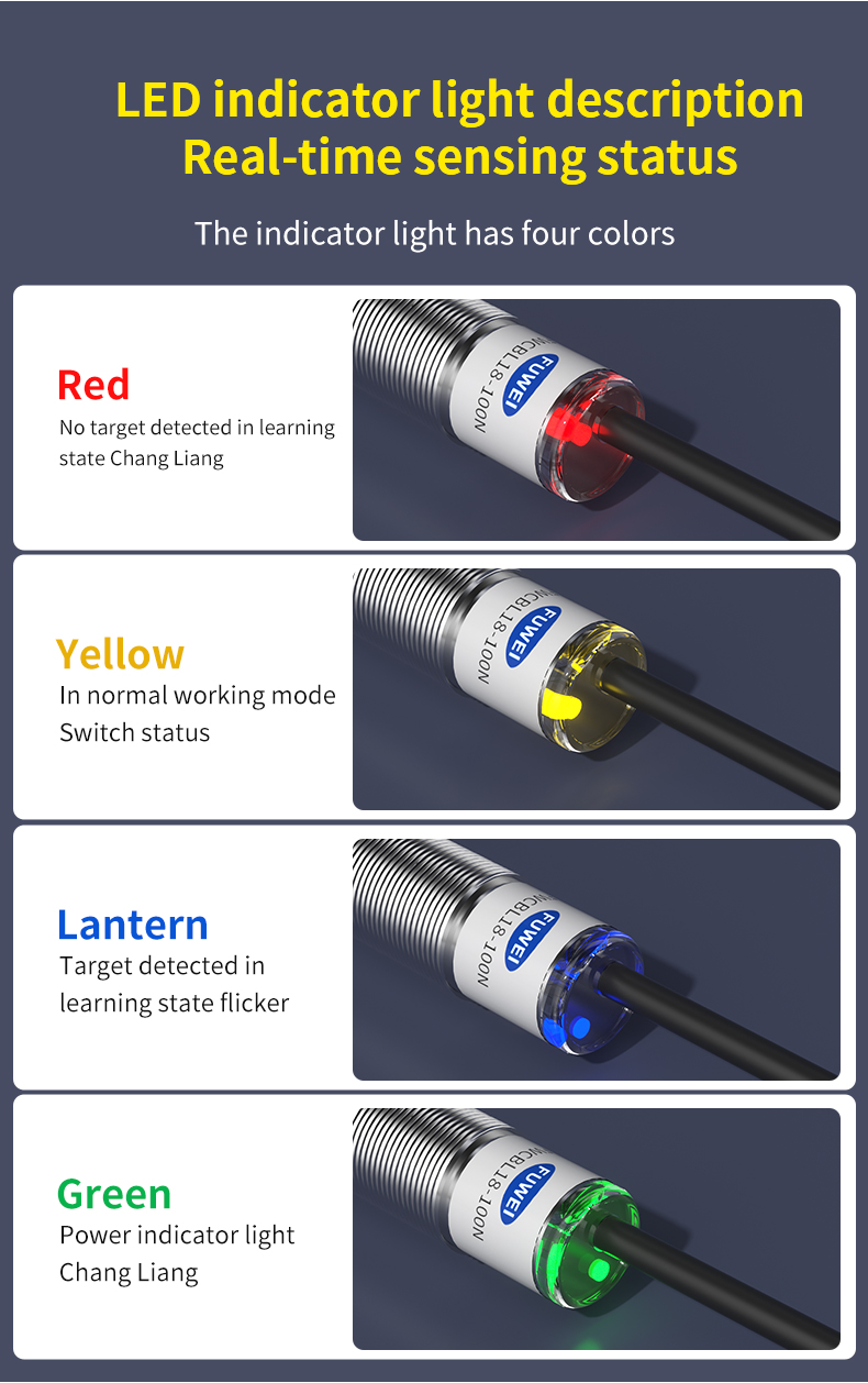 Lumière bleue LED : elle clignote lorsqu'une cible est détectée en état d'apprentissage |