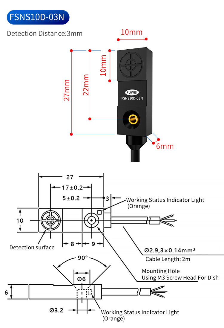 Chine Capteur de proximité inductif carré FSNS10D-03N Fournisseur, Fabricant - Prix direct usine - Capteur de proximité inductif carré Fuwei FSNS10D-03N