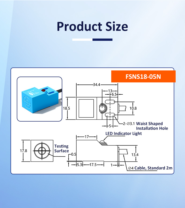 Au cœur de tout système automatisé performant se trouve le besoin fondamental d’une détection d’objets précise et fiable. Le FSNS18-05 n'est pas simplement un autre détecteur de proximité carré ; il s'agit d'une solution de détection sophistiquée alimentée par une puce intelligente intégrée. Cette technologie exclusive l'élève au-delà des capteurs standard, permettant une détection précise à une distance de détection constante de 5 mm. Cette plage de détection exacte est essentielle pour les applications telles que le positionnement mécanique des griffes et les systèmes de préhension automatisés, où même un millimètre de variation peut entraîner un désalignement, des chutes de pièces ou des arrêts de production. Mot clé : capteur de proximité carré, série FSNS18-05, puce intelligente, détection précise, distance de détection de 5 mm, détection précise, positionnement mécanique des griffes, systèmes de préhension automatisés.